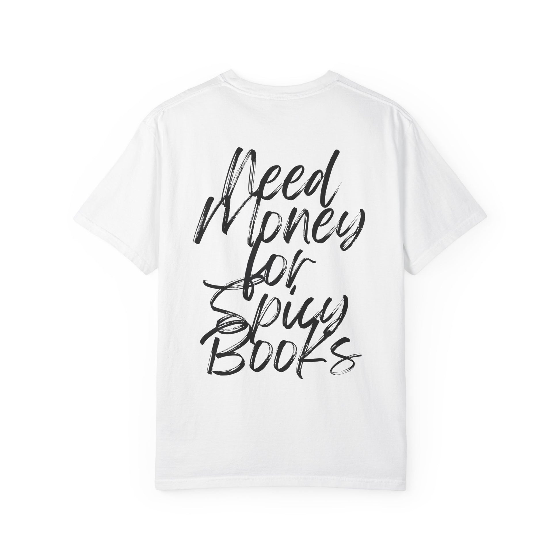 Express your passion for all things spicy and literary with our Need Money for Spicy Books Comfort Colors 1717 graphic tee. Designed especially for the avid romance reader who loves a dash of spice in their bookshelves! Made from premium Comfort Colors fabric, this relaxed-fit shirt offers exceptional softness, durability, and style. Perfect for cozy reading days, book club gatherings, or gifting to your favorite spicy book enthusiast.